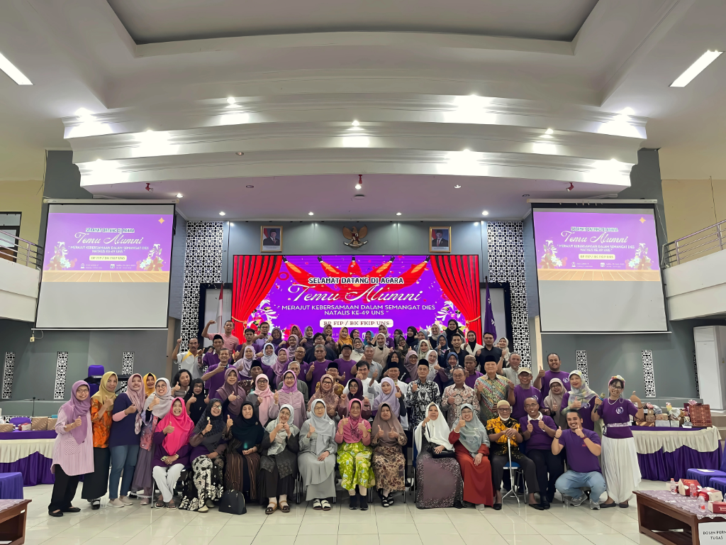 Surakarta, April 2025 – Dalam rangka memperingati Dies Natalis ke-49 Universitas Sebelas Maret (UNS), Program Studi Bimbingan dan Konseling Fakultas Keguruan dan Ilmu Pendidikan sukses menggelar kegiatan Temu Alumni dengan tema “Merajut Kebersamaan dalam Semangat Dies Natalis ke-49 UNS” pada 26 April 2025 lalu. Acara ini menjadi momen hangat untuk mempererat kembali jalinan silaturahmi antar alumni dari berbagai angkatan, dosen, dan mahasiswa aktif dalam suasana penuh keakraban dan nostalgia.