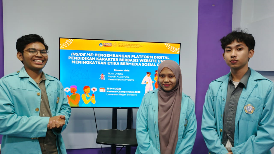 Tim kedua meraih Juara 2 dengan karya berjudul “INSIDE ME: Pengembangan Platform Digital Pendidikan Karakter Berbasis Website untuk Meningkatkan Etika Bermedia Sosial Gen Z”. Karya ini menyoroti urgensi pendidikan karakter digital di tengah tantangan penggunaan media sosial di kalangan generasi muda.